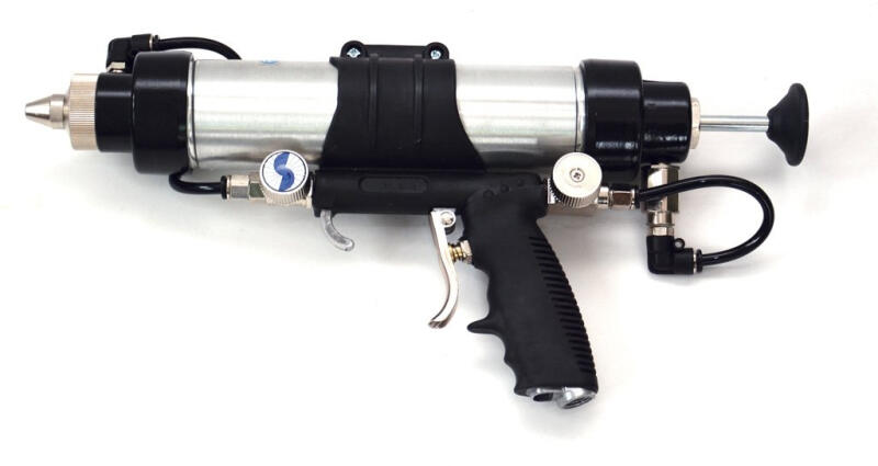professzionális pneumatikus szóró- és extrudálópisztoly spray, tömítőanyag, fugázó és ragasztóanyagok felhordására különböző patronokban és fólia/szalámi tasakokban (szilikon, akril, poliuretán és egyéb anyagok). Így többek között lehetőség van hegesztési varratok, különböző hézagok tömítésére, az ...