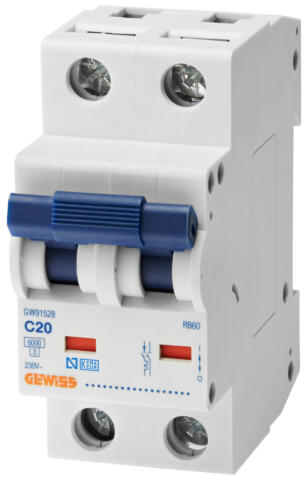 Kismegszakító 1P+N 20A C-jelleg 500V AC 6kA/60898 6kA/60947 RB60 GEWISS