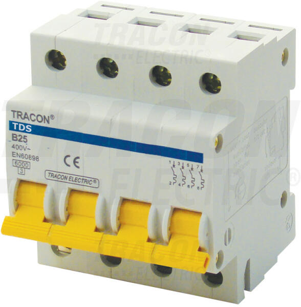 TDS-4B-6 Kismegszakító, színes karral, 4 pólus, B karakterisztika 6A, 6kA 6A, 6kA