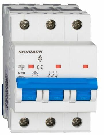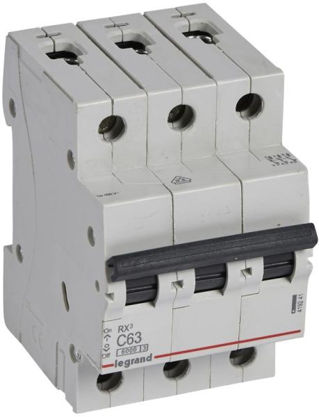 RX3 lakossági kismegszakítók 6 A és 63 A között C jelleggörbe Megfelel az IEC 60898-1 szabványnak Segédérintkezők fogadására nem alkalmas Zárlati megszakítóképesség: 6000 - IEC 60898-1 - 230/400 V~ 6 kA - IEC 60947-2 - 230/400 V~ 10000 - IEC 60898-1 - 127/220 V~ 10 kA - IEC 60947-2 - 127/220 V~ Hárompólusú 400 V~ C jelleggörbe Névleges áram In : 63 A 17,5 mm-es modulszám: