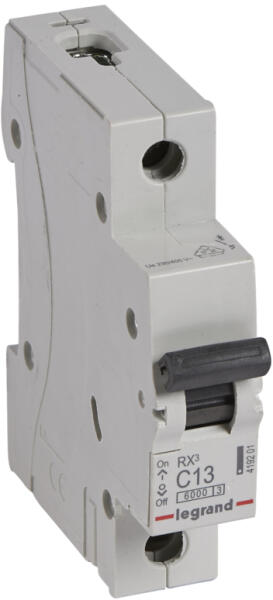 LEGRAND RX3 kismegszakító 1P C13 6000A BIC (419201) Terméki nformáció: Által ános jellemzők: RX3 lakossági kismegszakítók 6 A és 63 A között C jelleggörbe: Megfelel az IEC 60898-1 szabványnak Segédérintkezők fogadására nem alkalmas Felül fogas, alul fogas vagy villás fésűs sínnel beköthető Zárlati megszakítóképesség: 6000 - IEC 60898-1 - 230/400 V~, 6 kA - IEC 6094