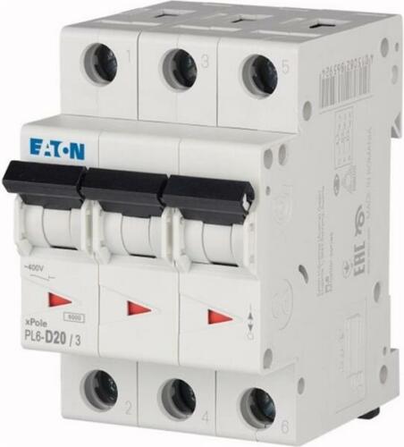 Megnevezés: Miniatűr megszakítók. Pólusok száma: 3 pólusú. Kioldási jellemző: D. Alkalmazás: Kapcsolóberendezések lakossági és kereskedelmi használatra. Névleges áramerősség [I n ]: 20 A. Névleges kapcsolási kapacitás az IEC/EN 60898-1 szerint [I cn ]: 6 kA.