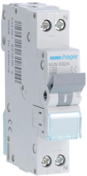 HAGER Kismegszakító 1P+N, C-32A, 4,5kA, 1M (MJN532A)