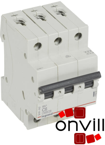 RX3 lakossági kismegszakítók 6 A és 63 A között C jelleggörbe Megfelel az IEC 60898-1 szabványnak Segédérintkezők fogadására nem alkalmas Zárlati megszakítóképesség: 6000 - IEC 60898-1 - 230/400 V~ 6 kA - IEC 60947-2 - 230/400 V~ 10000 - IEC 60898-1 - 127/220 V~ 10 kA - IEC 60947-2 - 127/220 V~ Hárompólusú 400 V~ C jelleggörbe Névleges áram In : 6 A 17,5 mm-es modulszám: 3