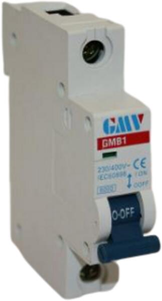 GMV GMB1-63.1PB6 Kismegszakító 1B 6A feladata, hogy túl áram- és zárlat-védelemmel lássa el az elektromos hálózatot, és a hálózatra kapcsolt elektromos berendezéseket. A kismegszakító névlegesnél nagyobb áramon felül az elektromos berendezést automatikusan lekapcsolja a hálózatról.