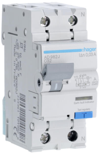HAGER Áramvédős kismegszakító 1P+N, C-32A, 30mA, 6kA, A (AD982J)