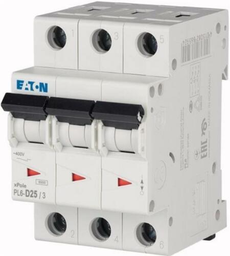 Megnevezés: Kis megszakító. Pólusok száma: 3 pólusú. Kioldási jellemző: D. Alkalmazás: Kapcsolóberendezések lakossági és kereskedelmi használatra. Névleges áramerősség [I n ]: 25 A. Névleges kapcsolási kapacitás az IEC/EN 60898-1 szerint [I cn ]: 6 kA.