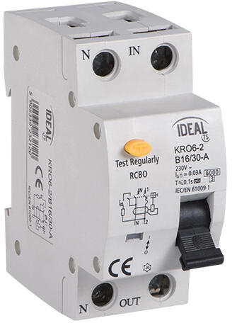KANLUX KRO6-2/B10/30 FI relé (kismegszakító + életvédelmi relé), 10A, B, 230V AC (23213) Termékin formáció: Kismegszakít óval egybeépített életvédelmi relé: a hálózatban és a berendezésekben fellépő túlterhelés, zárlatok elleni védelmére, valamint elektromos áramkörök megszakítására szolgál, védi az embert áramütés ellen. Műszaki adatok: Névleges feszültsé
