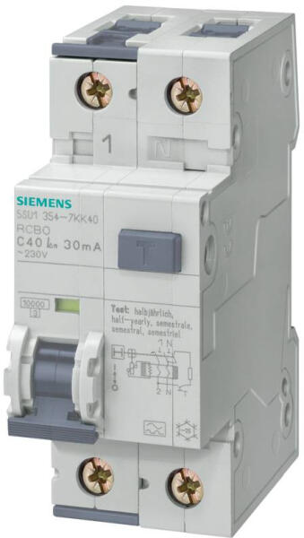Áramvédős kismegszakító 1P+N B 20A 10kA 5SU1354-3KK20 Siemens