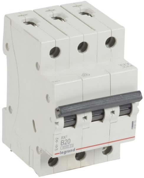 RX3 lakossági kismegszakítók 6 A és 63 A között B jelleggörbe Megfelel az IEC 60898-1 szabványnak Segédérintkezők fogadására nem alkalmas Felül fogas, alul fogas vagy villás fésűs sínnel beköthető Zárlati megszakítóképesség: 6000 - IEC 60898-1 - 230/400 V~ 6 kA - IEC 60947-2 - 230/400 V~ 10000 - IEC 60898-1 - 127/220 V~ 10 kA - IEC 60947-2 - 127/220 V~ Hárompólusú 400 V