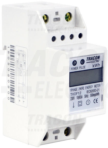 TVOF12 LCD kijelzésű fogyasztásmérő, közvetlen, 1 fázisú, 2 modul 230VAC / 10(60)A 230VAC / 10(60)A