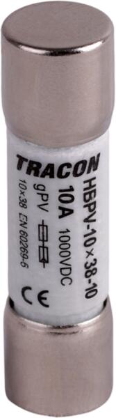 Kivitel: egyéb Méret: 10x38 mm Feszültség fajtája: DC Névleges áram: 10 A Névleges feszültség: 1 000 V Rendeltetés: gPV Kioldási karakterisztika: közepesen lomha (MT) Lekapcsolási teljesítmény: 10 kA Teljesítményveszteség névleges áramnál: 3,5 W