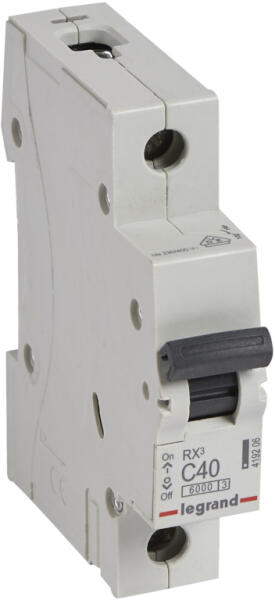 LEGRAND RX3 kismegszakító 1P C40 6000A BIC (419206) Terméki nformáció: Által ános jellemzők: RX3 lakossági kismegszakítók 6 A és 63 A között C jelleggörbe: Megfelel az IEC 60898-1 szabványnak Segédérintkezők fogadására nem alkalmas Felül fogas, alul fogas vagy villás fésűs sínnel beköthető Zárlati megszakítóképesség: 6000 - IEC 60898-1 - 230/400 V~, 6 kA - IEC 6094