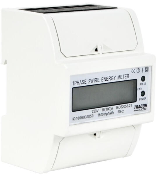 TRACON LCD kijelzésű fogyasztásmérő, közvetlen, 1 fázisú, 4 modul, 230VAC / 10(100)A (TVOF14) Termékinform áció: Számláló típusa: elektronikus Névleges áram (In): 100 A Maximális áram (Imax): 120 A Névleges feszültség (Un) N-L: 230 -230 V Frekvencia: 50 -50 Hz Pontossági osztály: B Pólustípus: 1-fázisú Kivitel: direkt Energiatípus: hatásos teljesítmény Alkalmas: vé