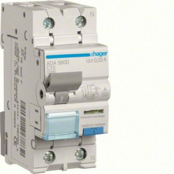 HAGER Áramvédős kismegszakító 1P+N, C-10A, 30mA, 10kA, A (ADA560D)