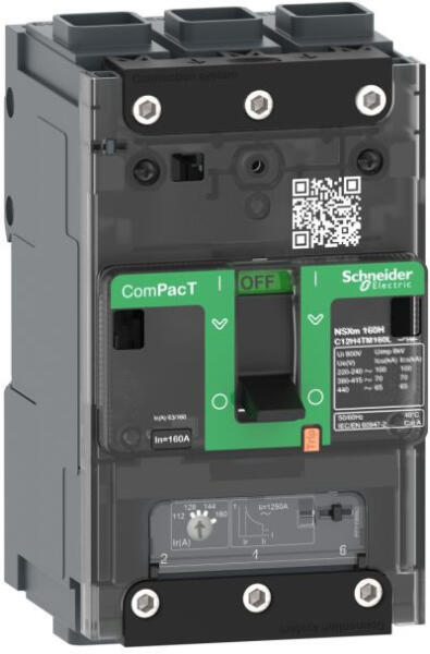 Compact NSXm 16kA TM25D megszakító 3P EverLink csatlakozókkal C11E3TM025L Schneider Ez egy ComPacT NSXm öntött házas megszakító, 25A, 16kA, 415VAC, minden kisfeszültségű szabványos alkalmazáshoz. Olyan új funkciókat kínál, mint az Everlink technológia, a DIN sínre és lemezre szerelési lehetőség. Kívülről látható új rugós segédeszközöket ágyaz be. A ComPacT NSXm az