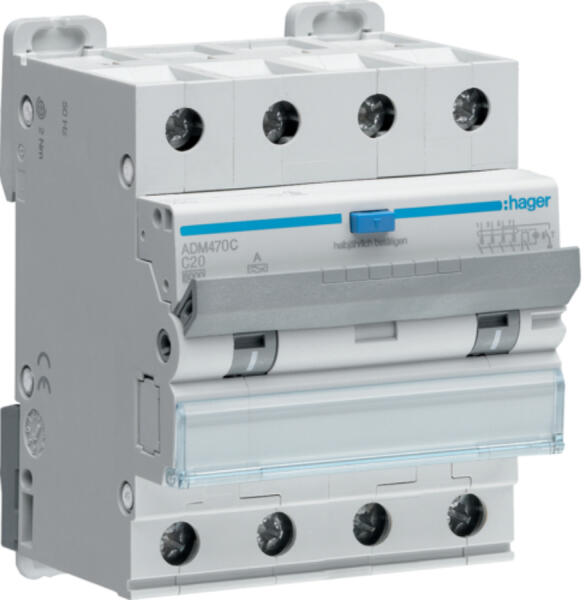 HAGER Áramvédős kismegszakító 3P+N, C-20A, 30mA, 6kA, A (ADM470C)