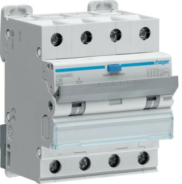 HAGER Áramvédős kismegszakító 3P+N, C-16A, 30mA, 6kA, A (ADM466C)