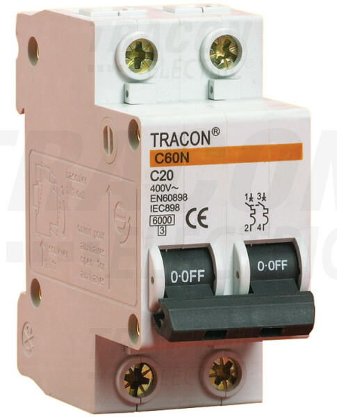 B60-4-2 Kismegszakító, 2 pólus, B karakterisztika 4A, 6kA 4A, 6kA