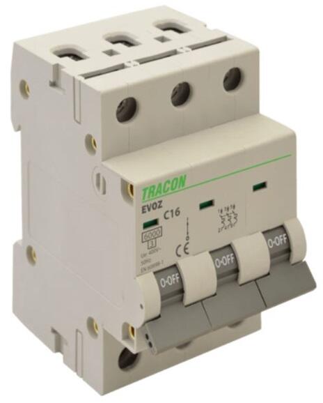 Típus:Kismegszakító, Pólusszám:3, Névleges megszakítóképesség:6kA, Névleges áram:16A,