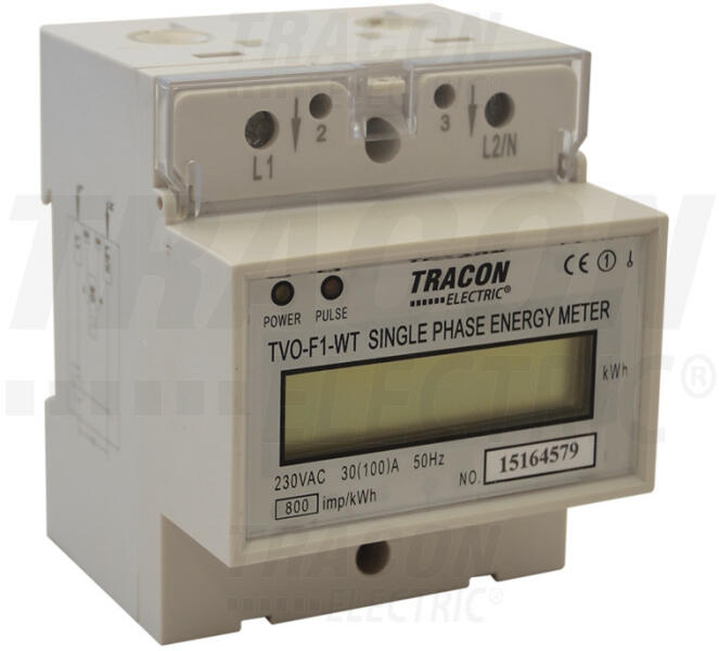 TVO-F1-WT LCD kijelzésű 1 fázisú átfűzős fogyasztásmérő, közvetlen 230V / 30 (100)A Pd=1W 230V / 30 (100)A Pd=1W