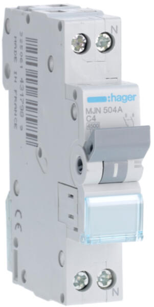 HAGER Kismegszakító 1P+N, C-4A, 4,5kA, 1M (MJN504A)