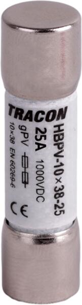 Kivitel: egyéb Méret: 10x38 mm Feszültség fajtája: DC Névleges áram: 25 A Névleges feszültség: 1 000 V Rendeltetés: gPV Kioldási karakterisztika: közepesen lomha (MT) Lekapcsolási teljesítmény: 5 kA Teljesítményveszteség névleges áramnál: 7,5 W