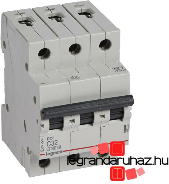 RX3 lakossági kismegszakítók 6 A és 63 A között C jelleggörbe Megfelel az IEC 60898-1 szabványnak Segédérintkezők fogadására nem alkalmas Zárlati megszakítóképesség: 6000 - IEC 60898-1 - 230/400 V~ 6 kA - IEC 60947-2 - 230/400 V~ 10000 - IEC 60898-1 - 127/220 V~ 10 kA - IEC 60947-2 - 127/220 V~ Hárompólusú 400 V~ C jelleggörbe Névleges áram In : 32 A 17,5 mm-es modulszám: