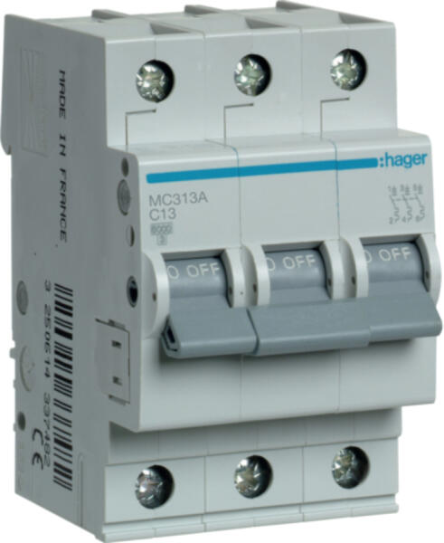 HAGER Kismegszakító 3P, C-13A, 6kA, 3M (MC313A)