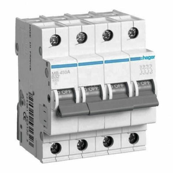 HAGER Kismegszakító 4P, B-50A, 6kA, 4M (MB450A)
