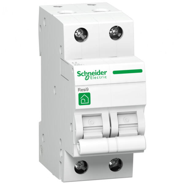 Kismegszakító 2C 16A 4,5kA RESI9 R9F14216 Schneider Ez a termék egy Resi9 kisfeszültségű kismegszakító (MCB). Ez egy 2P megszakító, amelynek 2 védett pólusa és 16A névleges áramerőssége és C kioldási görbéje van. Az Icn névleges rövidzárlati megszakítókapacitása legfeljebb 4500 A 230 V-os váltóáram esetén, az EN/IEC 60898-1 szabványnak megfelelően. Ez a termék meg