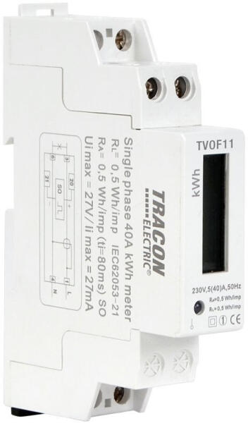 Fogyasztásmérő 1F 40A digitális, DIN sínre, közvetlen TVOF11 Tracon