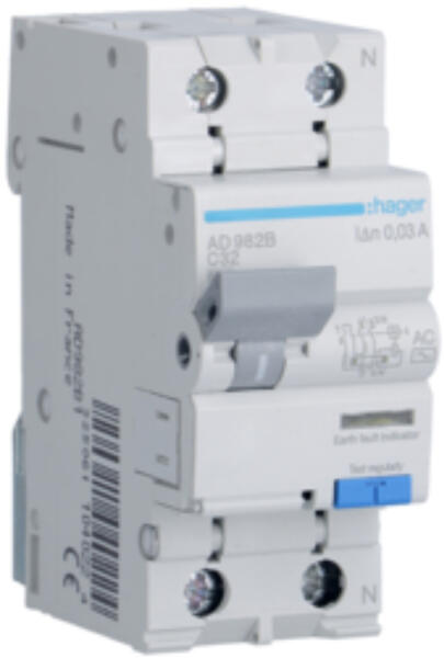 HAGER Áramvédős kismegszakító 1P+N, C-32A, 30mA, 6kA, AC (AD982B)