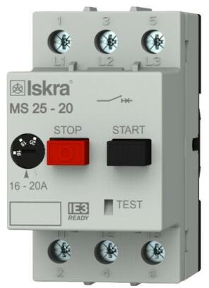 Motorvédő kapcsoló 3P 16-20A-hő 4kA fix termomágneses csavaros MS25 Iskra