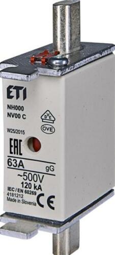 Leírás: NH000 gG 63A/500V. Tömeg: 120g. Szint: NH-rendszerű (késes) olvadóbetétek (gG, ... 690V AC). Névleges áram: 63. Típus: NH. Méret: NH000. Karakterisztika: gG. Névleges feszültség AC (V): 500. Megszakítóképesség AC (kA): 120. Pd (W): 5,8.