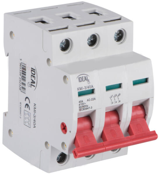 KANLUX KMI-3/40A moduláris kapcsoló, 230/400 AC (23232) Termékin formáció: Névleges áramerősségű áramkörök szétkapcsolására szolgáló kismegszakító. Műszaki adatok: Névleges feszültség: 230/400V/AC Névleges frekvencia: 50Hz Névleges áram: 40A Felhasználási kategória: AC-22A Modulok száma: 3 IP védettség: IP20 A használt vezetékek keresztmetszete: 1-50 mm 2 Környe