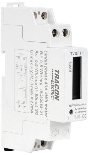TRACON LCD kijelzésű fogyasztásmérő, közvetlen, 1 fázisú, 1 modul, 230VAC / 5(40)A (TVOF11) Termékinform áció: Számláló típusa: elektronikus Névleges áram (In): 40 A Maximális áram (Imax): 48 A Névleges feszültség (Un) N-L: 230 -230 V Frekvencia: 50 -50 Hz Pontossági osztály: B Pólustípus: 1-fázisú Kivitel: direkt Energiatípus: hatásos teljesítmény Alkalmas: vétele