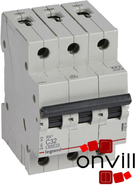 RX3 lakossági kismegszakítók 6 A és 63 A között C jelleggörbe Megfelel az IEC 60898-1 szabványnak Segédérintkezők fogadására nem alkalmas Zárlati megszakítóképesség: 6000 - IEC 60898-1 - 230/400 V~ 6 kA - IEC 60947-2 - 230/400 V~ 10000 - IEC 60898-1 - 127/220 V~ 10 kA - IEC 60947-2 - 127/220 V~ Hárompólusú 400 V~ C jelleggörbe Névleges áram In : 32 A 17,5 mm-es modulszám: