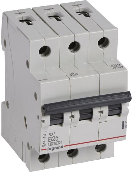 RX3 lakossági kismegszakítók 6 A és 63 A között B jelleggörbe Megfelel az IEC 60898-1 szabványnak Segédérintkezők fogadására nem alkalmas Felül fogas, alul fogas vagy villás fésűs sínnel beköthető Zárlati megszakítóképesség: 6000 - IEC 60898-1 - 230/400 V~ 6 kA - IEC 60947-2 - 230/400 V~ 10000 - IEC 60898-1 - 127/220 V~ 10 kA - IEC 60947-2 - 127/220 V~ Hárompólusú 400 V