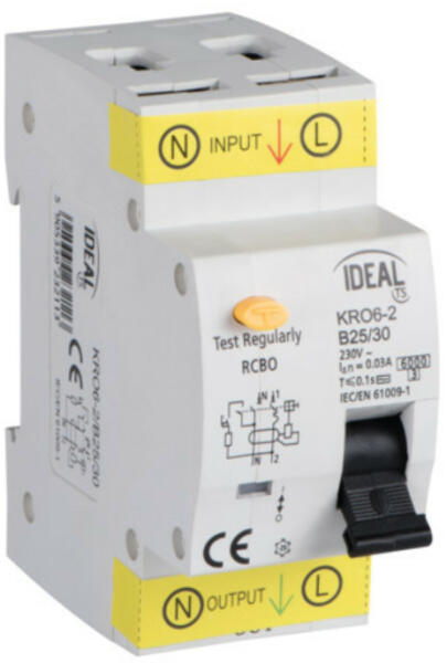 KANLUX KRO6-2/B25/30 FI relé (kismegszakító + életvédelmi relé), 25A, B, 230V AC (23211) Termékin formáció: Kismegszakít óval egybeépített életvédelmi relé: a hálózatban és a berendezésekben fellépő túlterhelés, zárlatok elleni védelmére, valamint elektromos áramkörök megszakítására szolgál, védi az embert áramütés ellen. Műszaki adatok: Névleges feszültsé