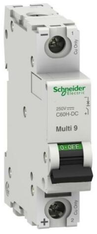 Termék neve: Multi 9 C60H-DC. Termék vagy komponens típusa: Kisautomata kapcsoló. Készülék rövid megnevezése: C60H RCBO. Készülékalkalmazás: Elosztás. Pólusok megnevezése: 1P. Védett pólusok száma: 1. Névleges áramerősség: 6 A -25 °C. Hálózat típusa: DC. Kioldóegység technológia: Termikus-mágneses. Görbe: C.