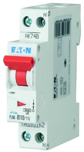 Kismegszakító 1P+N 10A B-jelleg 230V AC 6kA/60898 PLN6-B10/1N-DE EATON