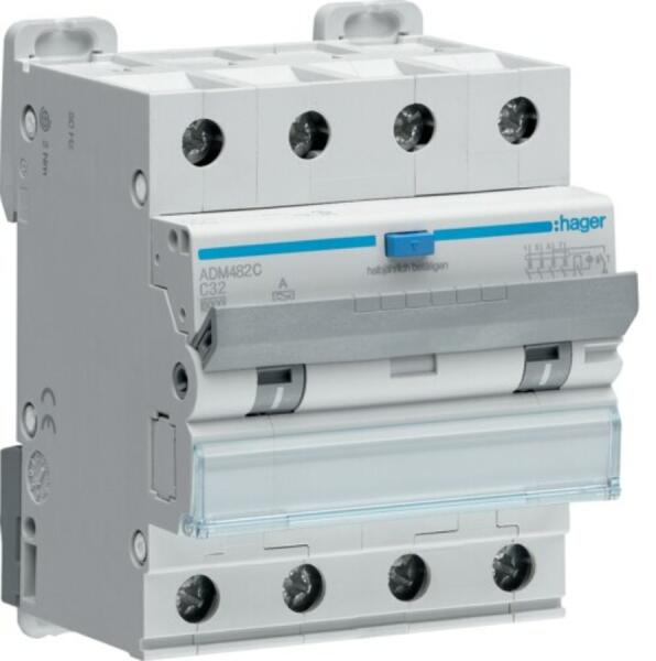 HAGER Áramvédős kismegszakító 3P+N, C-32A, 30mA, 6kA, A (ADM482C)