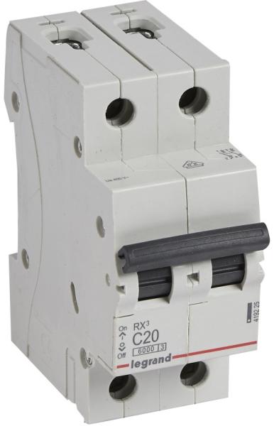 RX3 lakossági kismegszakítók 6 A és 63 A között C jelleggörbe Megfelel az IEC 60898-1 szabványnak Segédérintkezők fogadására nem alkalmas Zárlati megszakítóképesség: 6000 - IEC 60898-1 - 230/400 V~ 6 kA - IEC 60947-2 - 230/400 V~ 10000 - IEC 60898-1 - 127/220 V~ 10 kA - IEC 60947-2 - 127/220 V~ Kétpólusú 230/400 V~ C jelleggörbe Névleges áram In : 20 A 17,5 mm-es modulszám