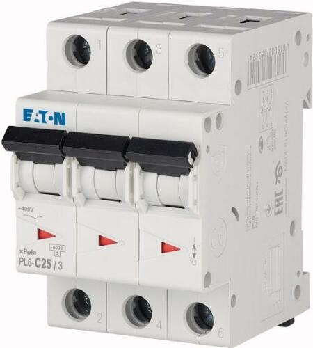Megnevezés: kismegszakítók. Pólusok száma: 3 pólusú. Kioldási jellemző: C. Alkalmazás: Kapcsolóberendezések lakossági és kereskedelmi használatra. Névleges áramerősség [I n ]: 25 A. Névleges kapcsolási kapacitás az IEC/EN 60898-1 szerint [I cn ]: 6 kA.