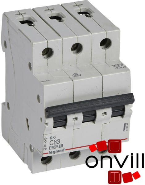 RX3 lakossági kismegszakítók 6 A és 63 A között C jelleggörbe Megfelel az IEC 60898-1 szabványnak Segédérintkezők fogadására nem alkalmas Zárlati megszakítóképesség: 6000 - IEC 60898-1 - 230/400 V~ 6 kA - IEC 60947-2 - 230/400 V~ 10000 - IEC 60898-1 - 127/220 V~ 10 kA - IEC 60947-2 - 127/220 V~ Hárompólusú 400 V~ C jelleggörbe Névleges áram In : 63 A 17,5 mm-es modulszám: