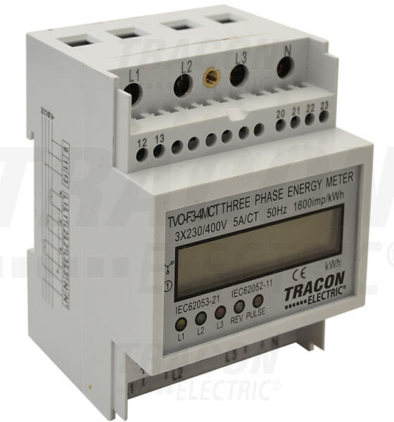 TVO-F3-4MCT LCD kijelzésű háromfázisú áramváltós fogyasztásmérő, 4 modul 400V / 5 A CT Pd=3W 400V / 5 A CT Pd=3W