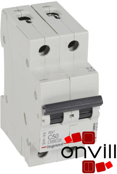 RX3 lakossági kismegszakítók 6 A és 63 A között C jelleggörbe Megfelel az IEC 60898-1 szabványnak Segédérintkezők fogadására nem alkalmas Zárlati megszakítóképesség: 6000 - IEC 60898-1 - 230/400 V~ 6 kA - IEC 60947-2 - 230/400 V~ 10000 - IEC 60898-1 - 127/220 V~ 10 kA - IEC 60947-2 - 127/220 V~ Kétpólusú 230/400 V~ C jelleggörbe Névleges áram In : 50 A 17,5 mm-es modulszám
