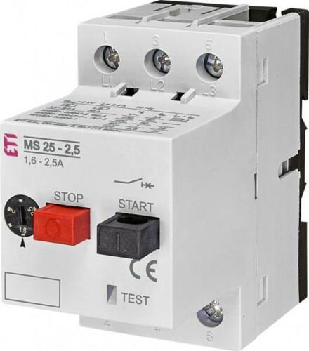 Leírás: MS25-2,5. Tömeg: 0.255kg. Szint: Motor Védőkapcsoló. P (AC3 kw) (kW): 0,75…1,1. Árambeállítási tartomány (A): 1,6 - 2,5. Short-circuit release Irm (A): 30. Max. rated operational voltage (V AC): 690.