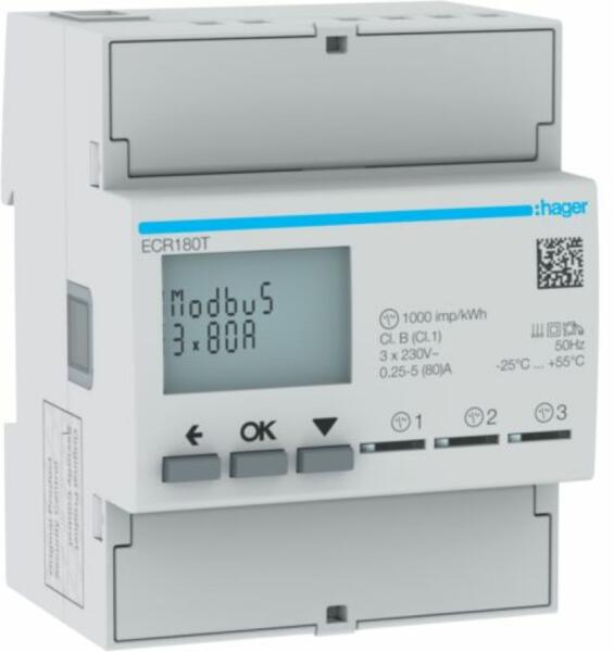 HAGER Fogyasztásmérő, direkt 3x80A 4modul MODBUS (ECR180T)